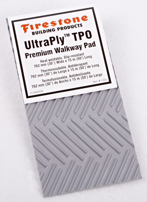 屋力维UltraPly™ TPO走道板是增强型的白色热塑材料。走道板的尺寸是30″ (0.76 m)宽,50′ (15 m)长一卷材料。走道板一面是纹理织物,另一面是光滑底面可以很容易焊接到UltraPly TPO屋面卷材上。走道板建议用在上人屋面人流量大以下区域,进行必要的保护: